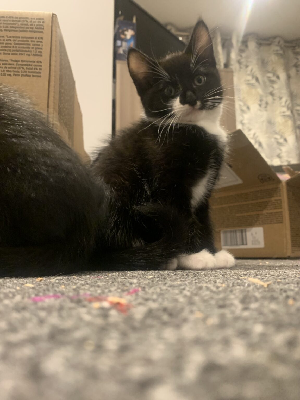 Kai, with his medium-length black-and-white fluff, is the perfect blend of playful and sensitive. He’s curious, sweet, and very much a mama’s boy; always keeping one eye on Kati. His confidence blossoms when he’s by her side, and the two of them take comfort in each other’s presence.