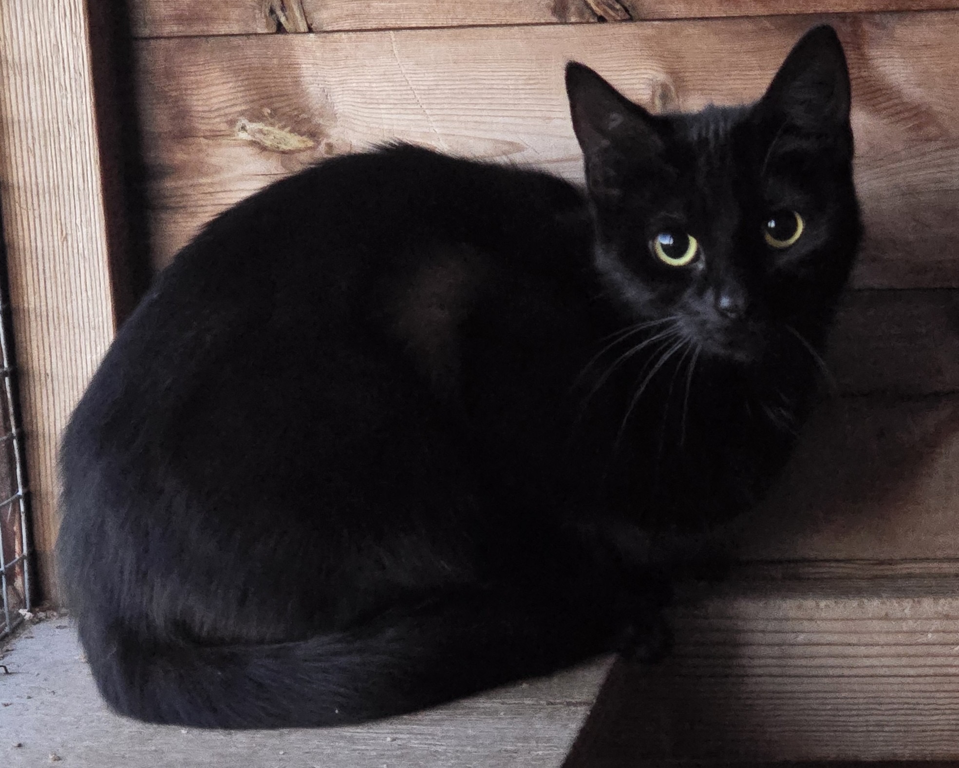 Layla is a delightful, quiet cat who loves attention once she gets to know you. Her guardian is Dave who, whenever anyone strange comes close, immediately goes to her to “protect” her. She has always been an indoor cat so would love warm comfortable lodgings with amenable servants as the outside world is very scary. She declined to have her picture taken on this occasion but is also black!