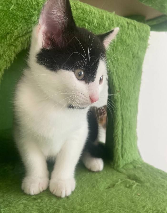 They arrived in foster when they were only 4 days old along with their lovely mama. They are both sociable boys who love to play and cause mischief. Marmaduke, (tabby), is outgoing whereas Puffin, (black and white), is more laid back. They would love a home where they would have lots of interaction with their hoomans. Would be fine with children aged 8+ but not with dogs.