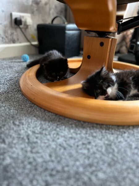These four black and white bundles of joy are growing fast and getting fluffier by the day! They’ve gone from sleepy little beans to wild, whiskery whirlwinds — full of personality and ready to find their forever homes in just a few weeks, once they’ve been chipped and vaccinated.